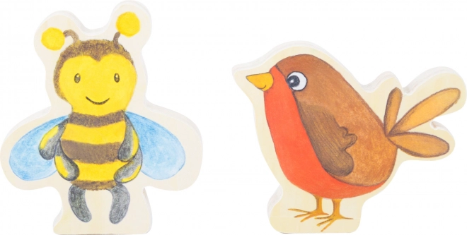 Drvena slikovnica + 2 drvene figurice (pčelica, ptičica)