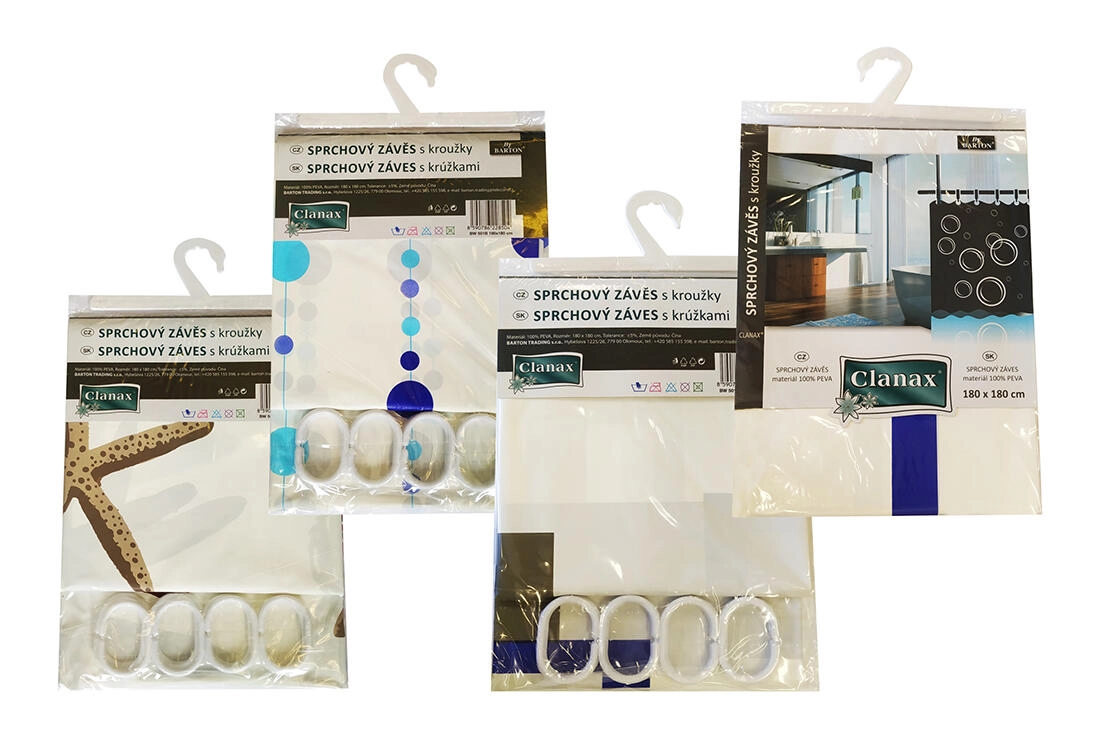 Praktična kupaonska zavjesa od PEVA dimenzija 180 × 180 cm pouzdano sprječava prskanje vode izvan tuš-kabine. U pakiranju se nalazi 12 kukica za jednostavnu instalaciju, a na izbor je miks dekora i boja (bijela, plava, zelena, bež) kako bi odgovarala vašoj kupaonici.