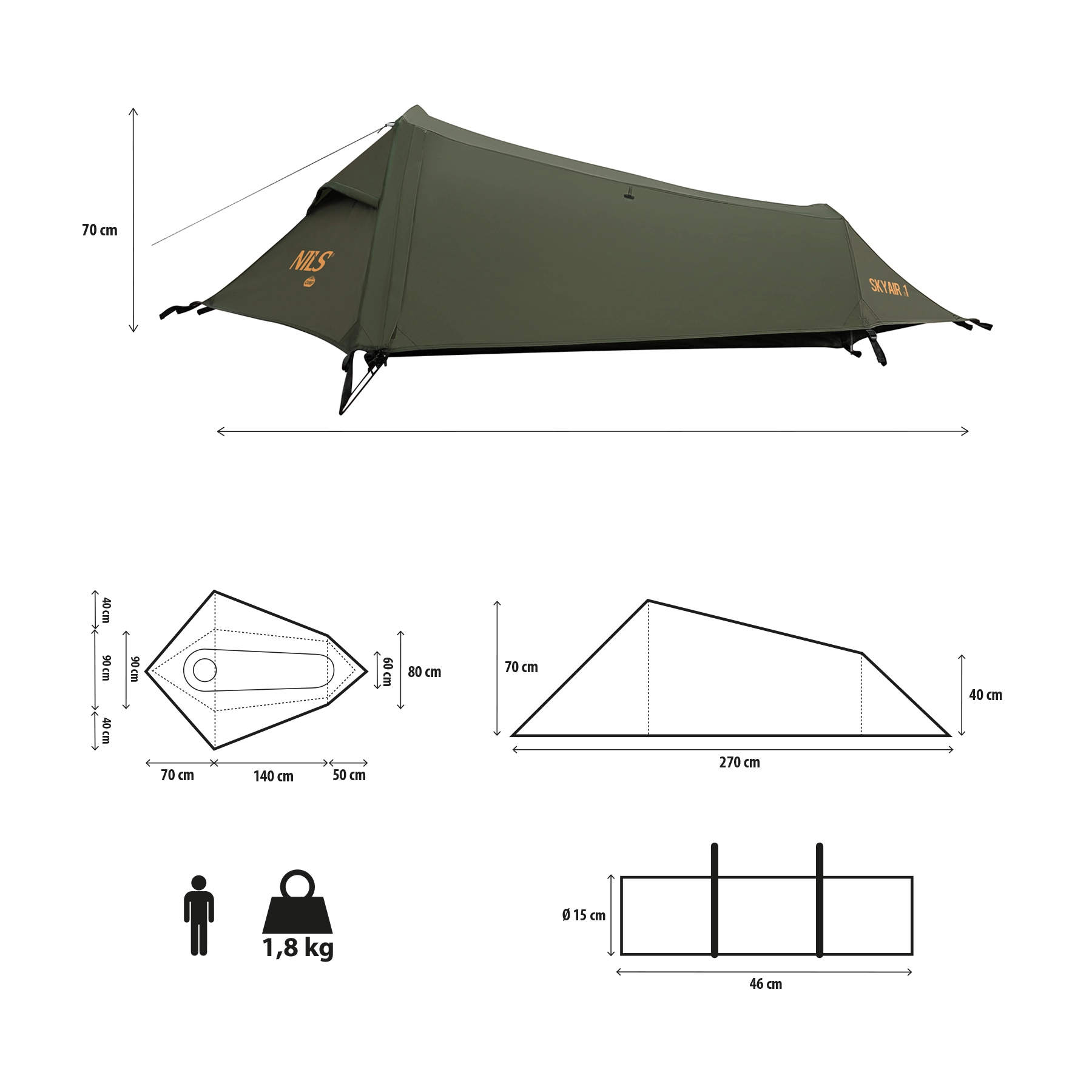 Ultralagan šator za jednu osobu s kompaktnim pakiranjem i brzom postavom – to je NILS CAMP Skyair 1. Nudi minimalnu masu 1,8 kg, izvrsnu otpornost na kišu (vanjski dio 3000 mm, podnica 5000 mm) i pouzdanu zaštitu od insekata zahvaljujući mrežici protiv komaraca no-see-um. Idealan za biciklističke ture, veslače i planinarske izlete.