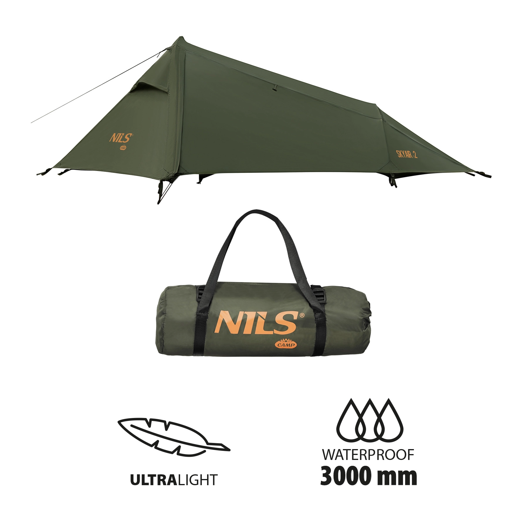 Ultralagani dvosjedni šator NILS Camp Skyair 2 idealan je za biciklističke ture, riječne izlete i planinarenje. Nudi minimalnu težinu od 2,4 kg, kompaktne dimenzije nakon pakiranja i pouzdanu zaštitu od kiše i vjetra. Zahvaljujući tropiku s vodnim stupcem 3000 mm, podnici 5000 mm i no-see-um mreži protiv komaraca osigurava udoban i miran san u prirodi.