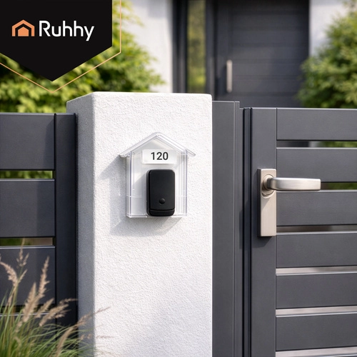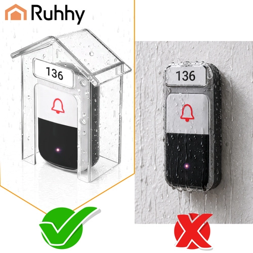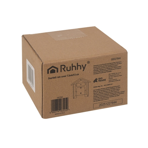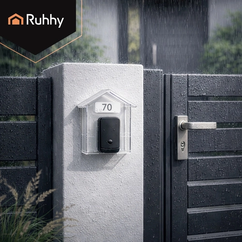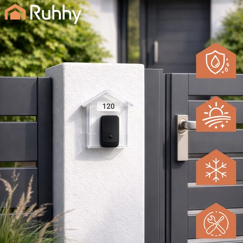 Praktična zaštitna nadstrešnica RUHHY pametno je rješenje za produženje vijeka trajanja vašeg zvona. Prozirni pokrov u obliku kućice učinkovito štiti od kiše, snijega i UV zračenja, a pritom zadržava potpunu vidljivost i pristup tipki. Zahvaljujući kompaktnim dimenzijama 9,5 × 4,3 × 9,9 cm odgovara većini bežičnih i žičanih zvona.