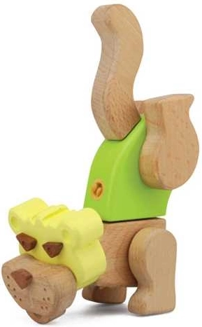 Igračka je izrađena od prirodnog drva i obojana bojama pogodnima za djecu.