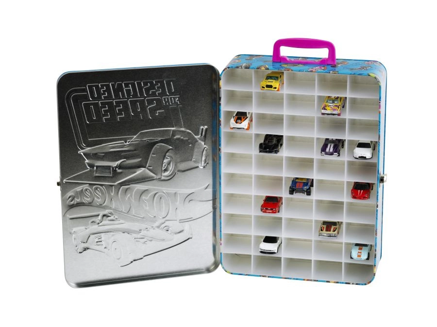 Izdržljivo metalno kućište s višebojnim tiskom i logotipom HOT WHEELS, udobna narančasta ručka i pouzdana metalna kopča protiv samovoljnog otvaranja čine ovaj kofer idealnim rješenjem za pohranu kod kuće i na putu.