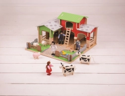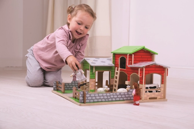 Set je izrađen od kvalitetnog drva iz odgovornih izvora i kompatibilan je s dodatnom opremom koja se može naknadno kupiti. Realistični elementi poput ribnjaka za patke, garaže za traktor i ogradica s pokretnim vratima potiču maštovitu igru, pripovijedanje i razvoj fine motorike.