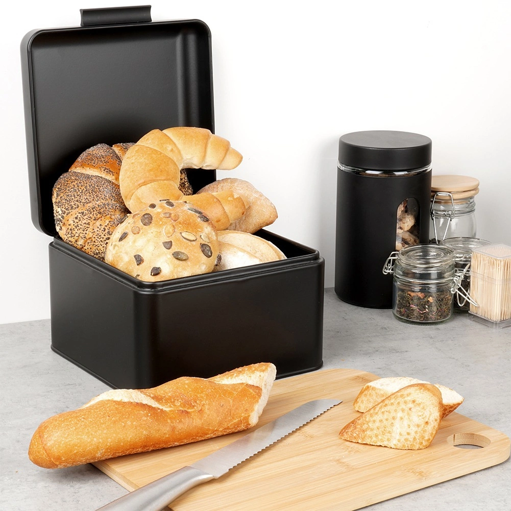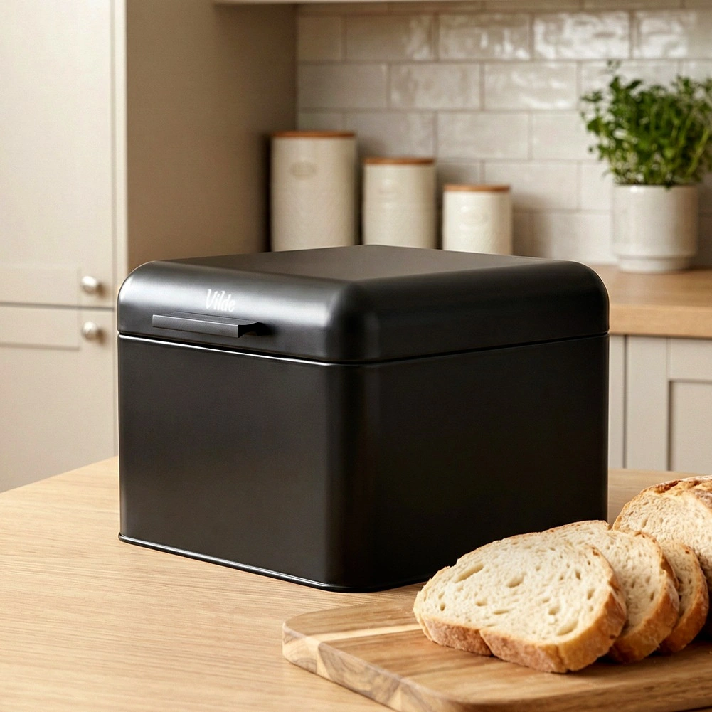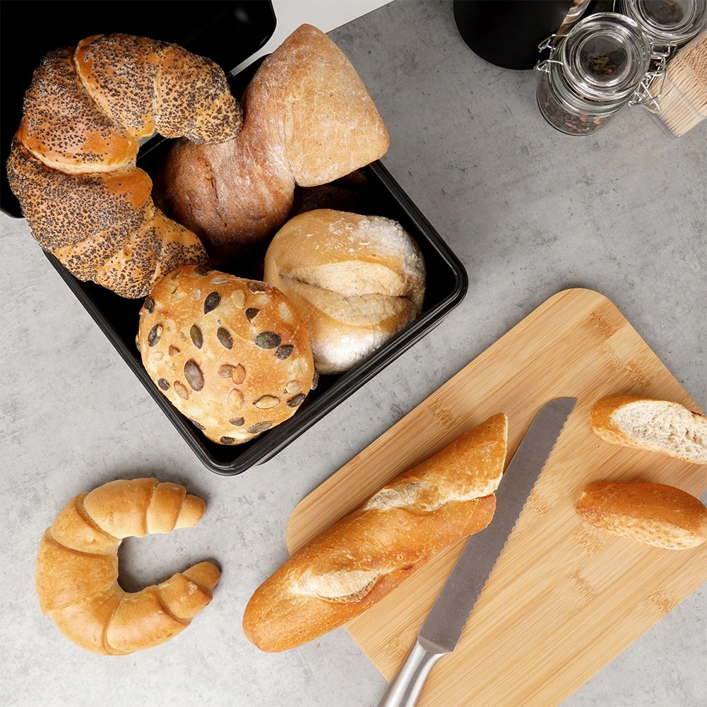 Praktična kutija za kruh od izdržljivog metala u mat crnoj izvedbi dizajnirana je tako da peciva ostanu dulje ukusna i hrskava. Poklopac na čvrstim šarkama lako se rukuje pomoću prednjeg prihvata te osigurava glatko otvaranje i zatvaranje pri svakodnevnoj upotrebi.