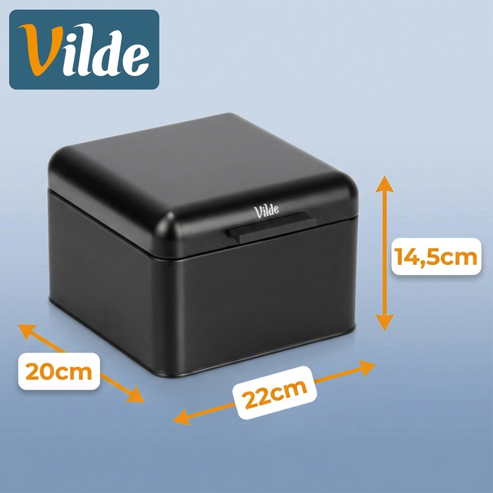Stilska metalna kutija za kruh u mat crnoj boji čuva vašu pekarsku robu dulje svježom. Zahvaljujući čvrstom poklopcu na šarkama učinkovito štiti od isušivanja, štedi prostor na radnoj plohi i svojim modernim dizajnom odlično nadopunjuje svaku kuhinju. Kompaktne dimenzije 22 × 20 × 14,5 cm idealne su za manji kruh, kifle ili kekse.