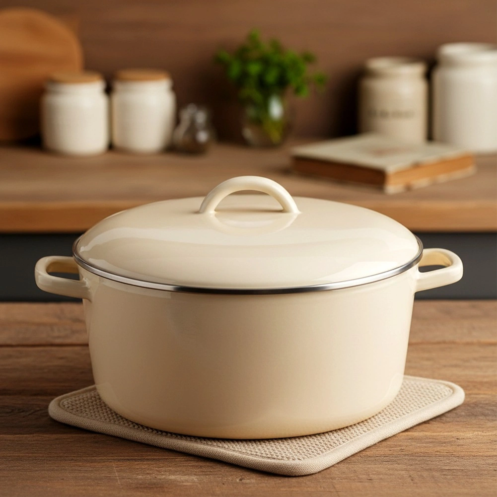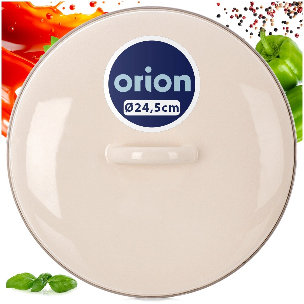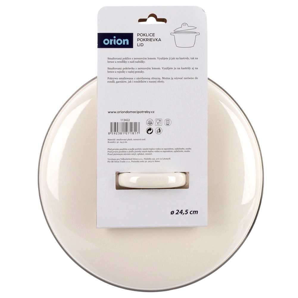 Univerzalni emajlirani poklopac u elegantnoj kremastoj boji pouzdano pristaje na većinu posuđa promjera 24,5 cm. Metalni obrub po rubu osigurava čvrsto dosjedanje na rub posude, čime pomaže boljem zadržavanju pare, ubrzava kuhanje i smanjuje potrošnju energije. Kvalitetan emajl je higijenski, lako se čisti i pogodan je i za osobe s osjetljivošću ili alergijama.