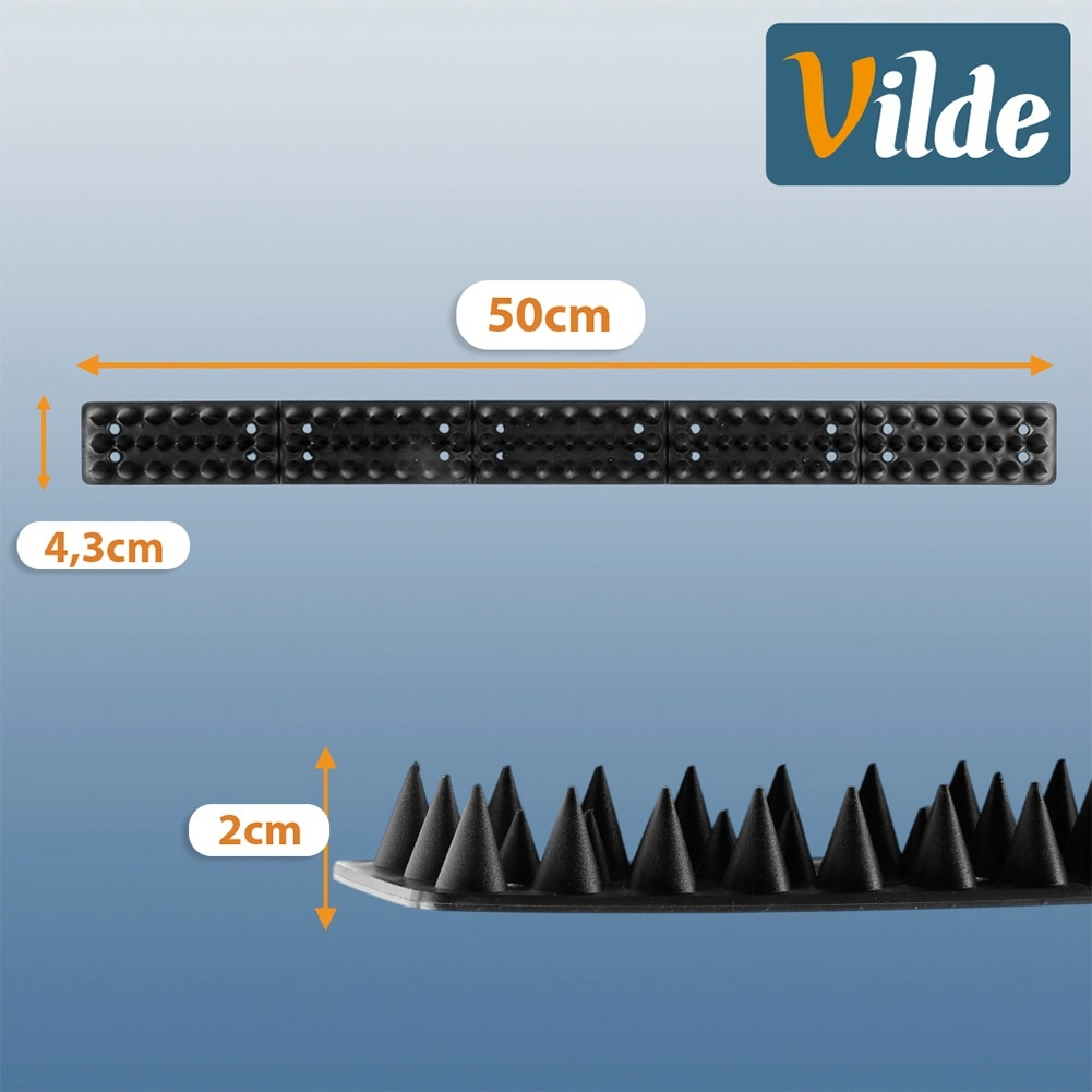 Svaka letvica od 50 cm ima približno 115 šiljaka koji stvaraju kontinuiranu barijeru protiv slijetanja ptica i prelaska mačaka.