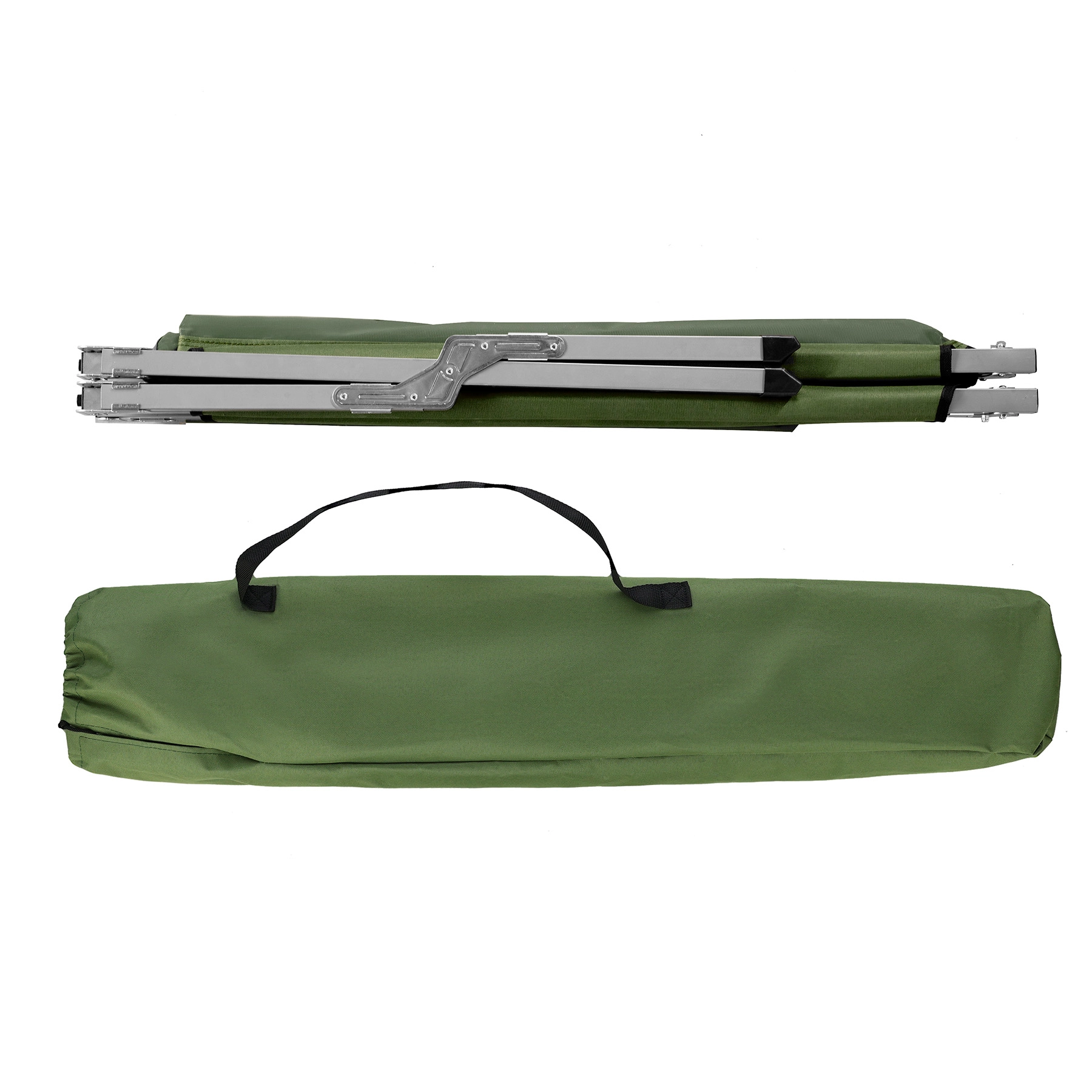U sklopljenom stanju ležaj je kompaktan i stane u priloženu torbu s patentnim zatvaračem i naramenicom – jednostavno za skladištenje i prijenos.