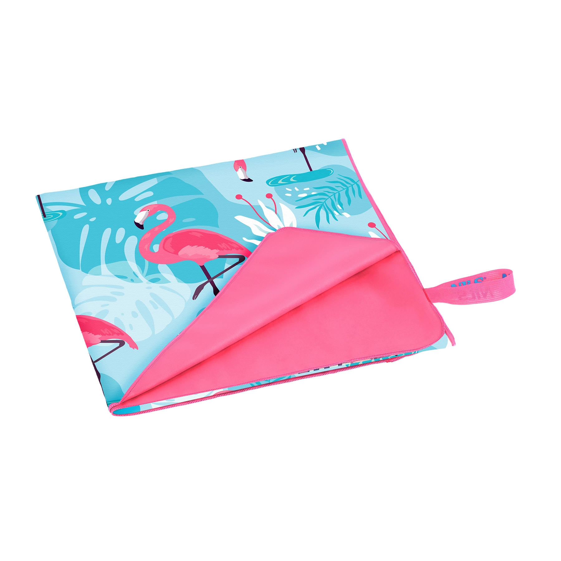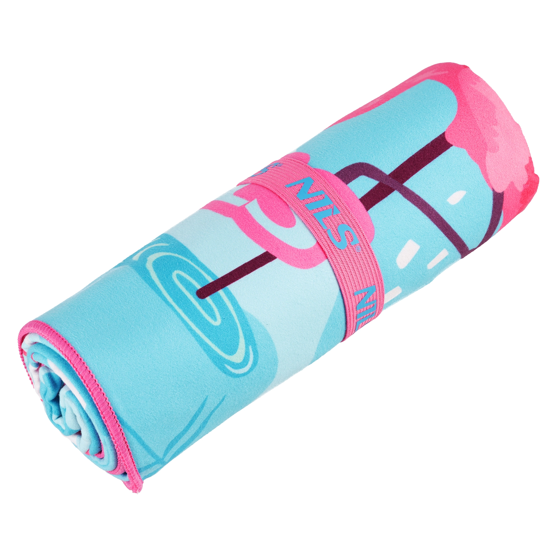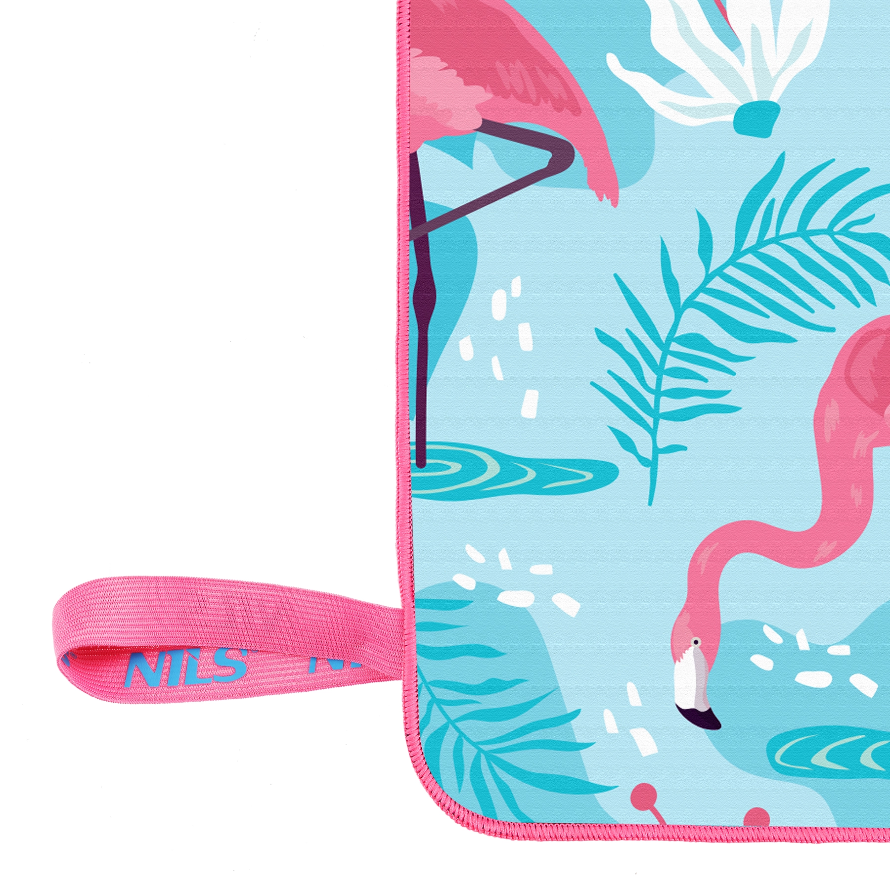 Stilski ručnik od mikrovlakana NILS Camp s motivom flamingosa idealan je za odmor, sport i vodu. Zahvaljujući brzo sušećem i super upijajućem materijalu osuši cijelo tijelo u trenu, lagan je, kompaktan i lako se održava.