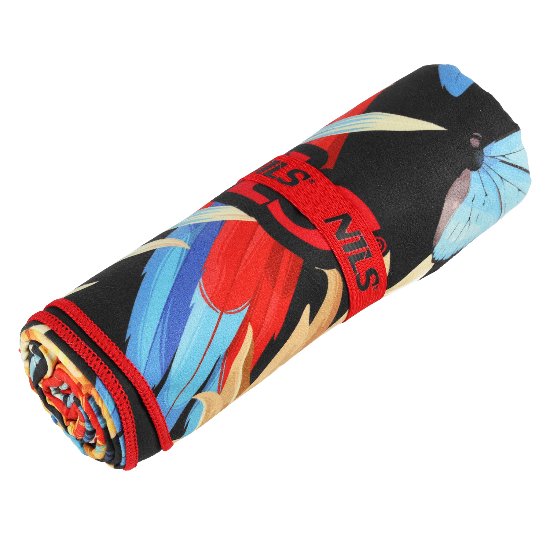Nakon savijanja ručnik fiksirate elastičnom trakom NILS, pa zauzima minimalno mjesta u ruksaku ili torbi i ostaje uredno zapakiran.