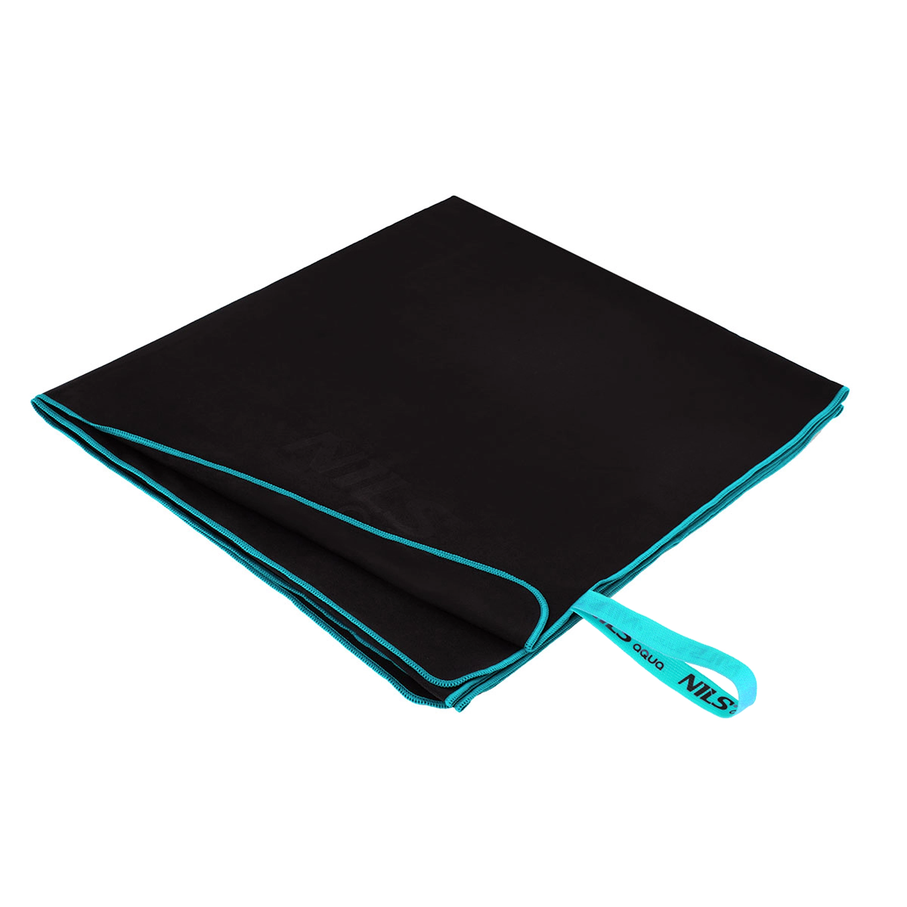 Brzusušeći ručnik od mikrovlakana NILS aqua, crno/plavi, 200 × 90 cm