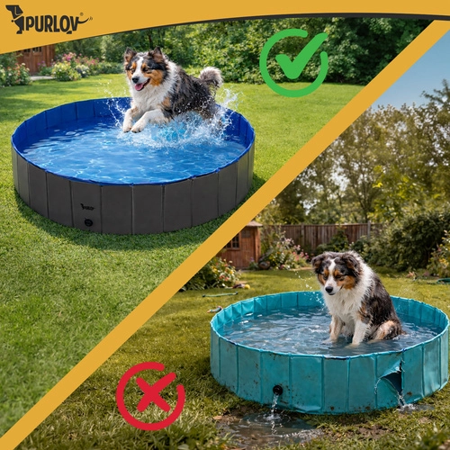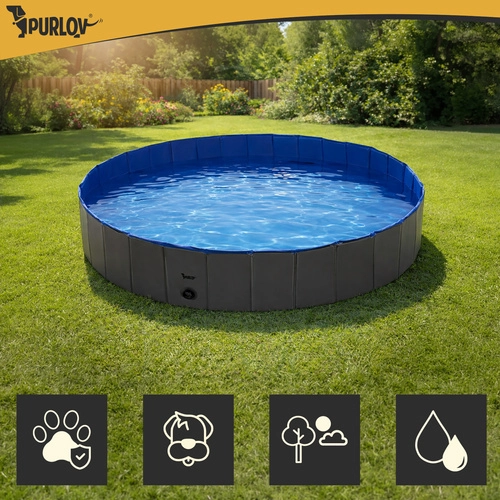 Sklopivi bazen za pse PURLOV idealan je izbor za osvježenje u vrućim danima, redovitu higijenu i blagu rehabilitaciju. Zahvaljujući čvrstoj konstrukciji s ojačanim pločama zadržava oblik, ne deformira se i ostaje stabilan i pri živahnijoj igri. Praktični odvodni ventil omogućuje brzo i čisto ispuštanje vode bez dizanja bazena.