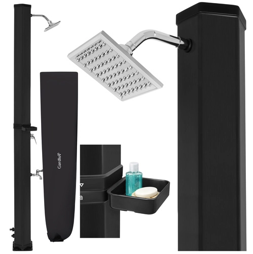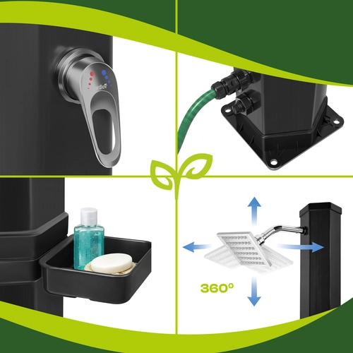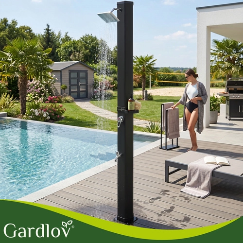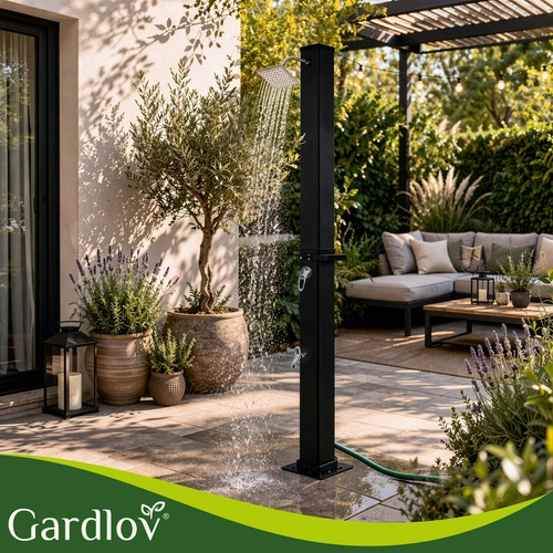 Solarni tuš GARDLOV je pametno i ekološko rješenje za svakoga tko želi toplu vodu bez električne energije. Zahvaljujući sunčevoj energiji zagrijava zalihu vode do 60 °C, pa ćete uživati u udobnom tušu nakon kupanja u bazenu, rada u vrtu ili sporta. Moderan dizajn s rotirajućom kišnom glavom 360° i stabilnom samostojećom konstrukcijom savršeno se uklapa u svaki eksterijer.