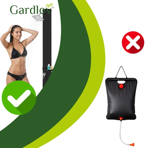Uživajte u vanjskom tuširanju s udobnošću doma – solarni tuš GARDLOV zagrijava vodu pomoću sunca, nudi kapacitet 40 l, temperaturu do 60 °C, rotirajuću glavu 360° i praktičnu slavinu za ispiranje stopala ili opreme. Otporan na UV zračenje i vremenske uvjete, idealan uz bazen, za vrt i vikendicu.