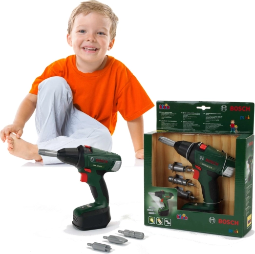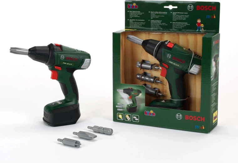 Realistična dječja aku bušilica Bosch II brenda Klein nudi sigurno i zabavno oponašanje rada odraslih. Ima izmjenjive bitove, dve brzine, desni/lijevi smjer vrtnje i LED svjetlo na vrhu. Ergonomska drška s mekšanim rukohvatom savršeno pristaje dječjoj ruci.