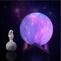 Prepustite se nježnom svjetlu koje stvara opuštajuću i ugodnu atmosferu. Mjesečeva lampa promjera 15 cm izrađena je pomoću 3D ispisa, pa realistično prikazuje kratere i neravnine površine. Zahvaljujući USB punjenju korištenje je praktično i bez potrebe za zamjenom baterija.