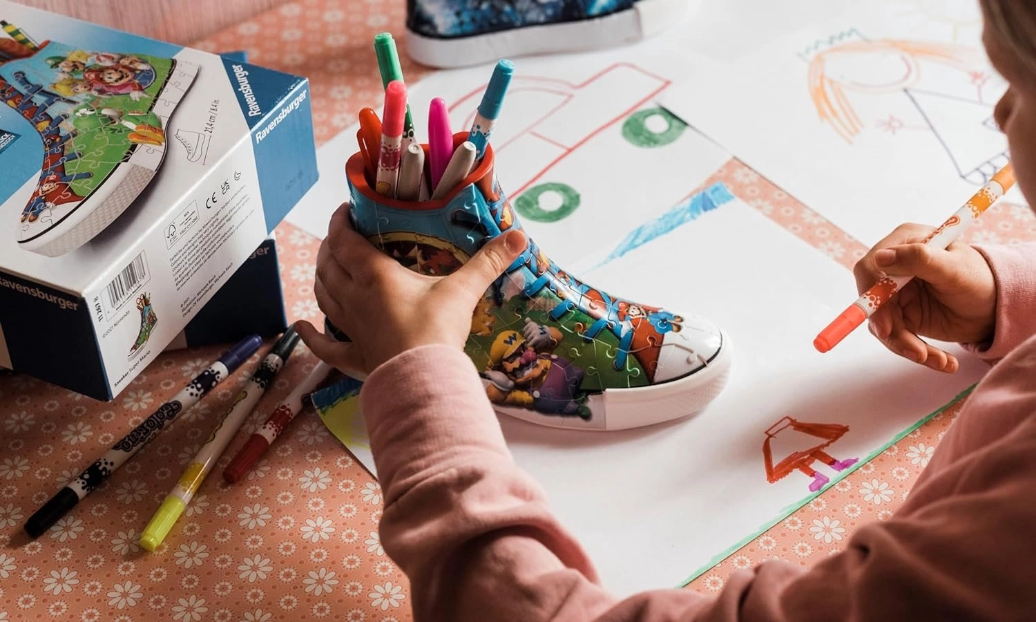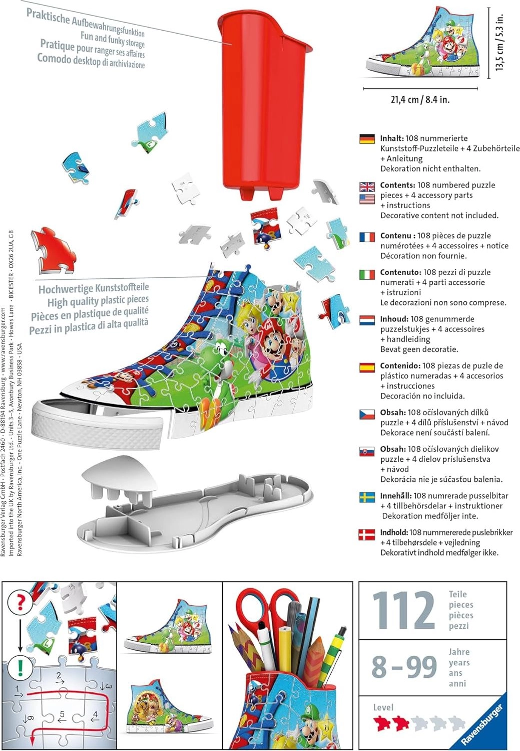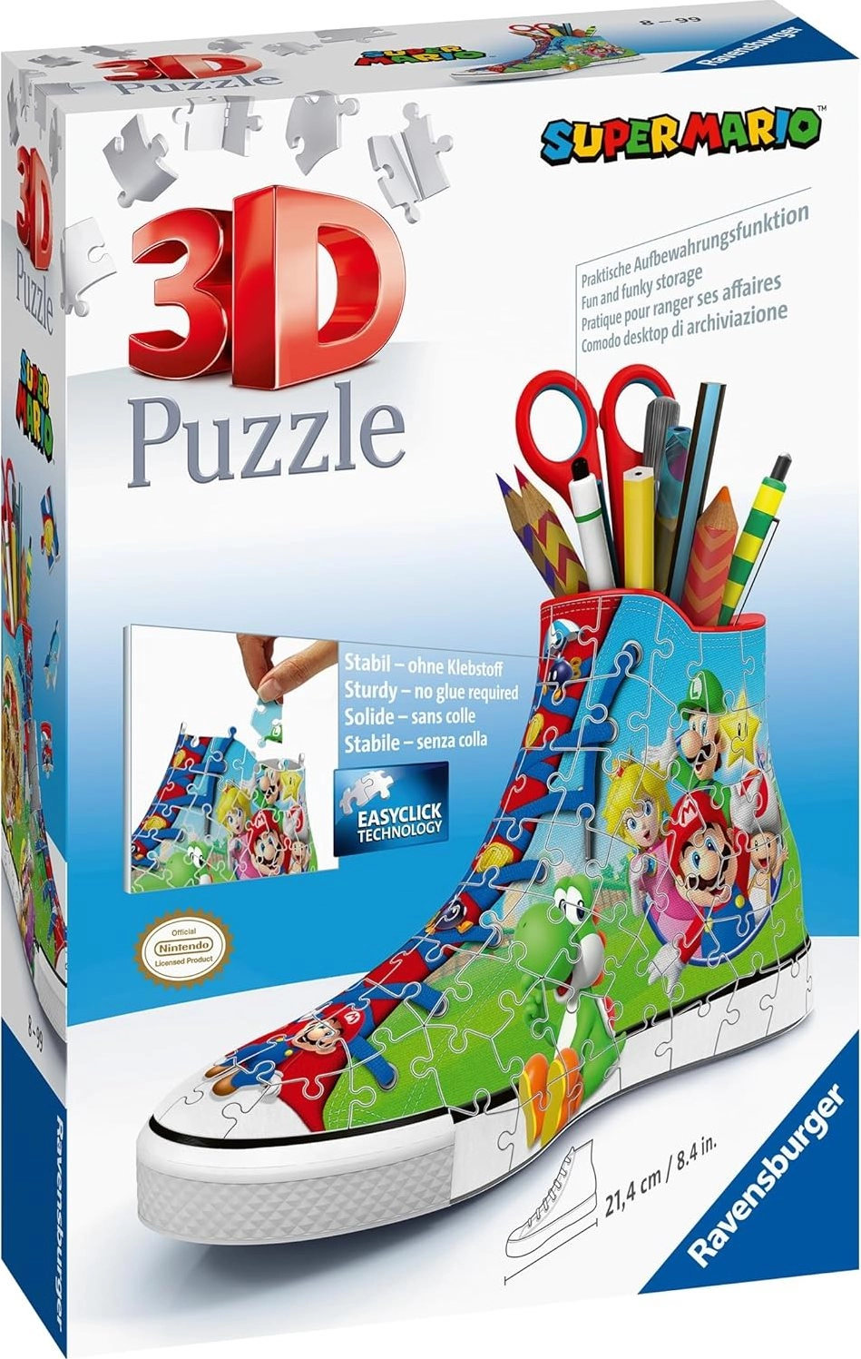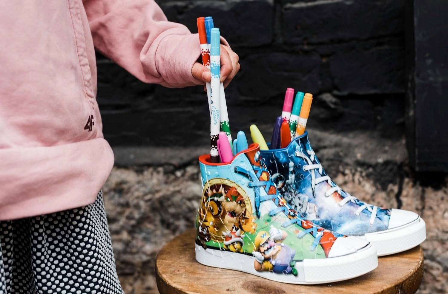 Sastavi od 108 plastičnih puzzle-dijelova ovu klasičnu tenisicu s motivom Super Marija i dobij savršenu dekoraciju za sobu! Nakon slaganja čeka te još jedan bonus: možeš je koristiti za kistove, olovke itd.
