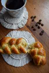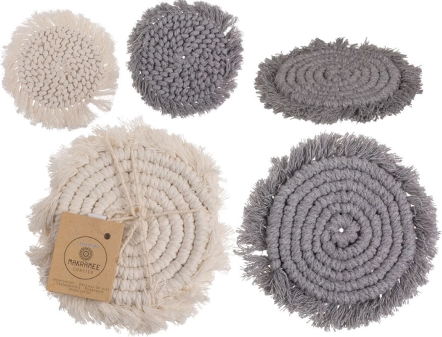 Otkrijte stilske makrame podloške za šalice koji spajaju funkcionalnost i estetiku. Zahvaljujući čvrstom pletenom izvođenju od pamuka s dodatkom poliestera pouzdano štite površine od krugova od šalica, ogrebotina i topline, a ujedno služe kao ukusna dekoracija.