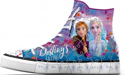 Genijalni spoj zabave i praktičnosti: 3D puzzle u obliku visoke tenisice s omiljenim junakinjama iz filma Frozen 2. Zahvaljujući čvrstim plastičnim dijelovima sastavit ćete izdržljivu dekoraciju koja služi kao držač za olovke, bojice i škare – bez ljepila, jednostavno i s izvrsnim rezultatom.