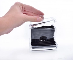 Održavajte svoju kupaonicu preglednom i higijenskom. Ovaj kompaktni dozirnik za vatirane štapiće izrađen je od kvalitetnog, netoksičnog PMMA akrila, koji je otporan na ogrebotine i lako se čisti. Prozirna izvedba omogućuje trenutnu kontrolu stanja zaliha.