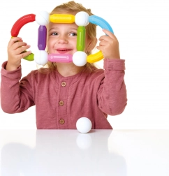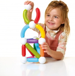Magnetski set za gradnju SmartMax Start Plus idealan je izbor za male istraživače. Set sadrži 30 dijelova, uključujući duge štapiće, srednje štapiće, zakrivljene dijelove i spojne kugle, koje omogućuju sastavljanje jednostavnih i složenih konstrukcija. Djeca mogu isprobavati različite 2D i 3D oblike i građevine poput tornjeva ili mostova.