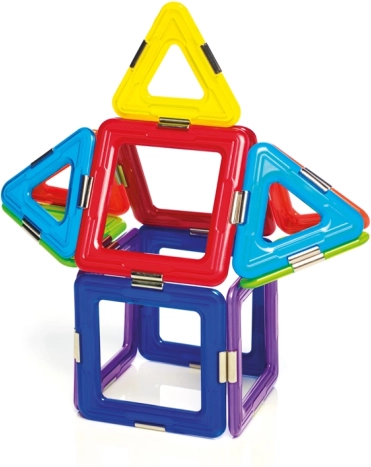 Set sadrži ukupno 6 magnetskih kvadrata, 8 trokuta i 1 spinner, što pruža širok prostor za eksperimentiranje. Ovaj set je ne samo zabavan, već i edukativan i razvija dječje vještine kao što su prostorna mašta, koordinacija, koncentracija i kreativnost.