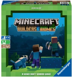 Ravensburger MINECRAFT: Builders & Biomes prenosi omiljene elemente videoigre na vaš stol. Putujte po hernom planu, eksploatirajte drvo, kamen i druge sirovine, gradite jedinstvene konstrukcije i skupljajte bodove pametno odabranim strategijama. Svaki krug donosi nove izbore i prilike da nadmudrite protivnike.