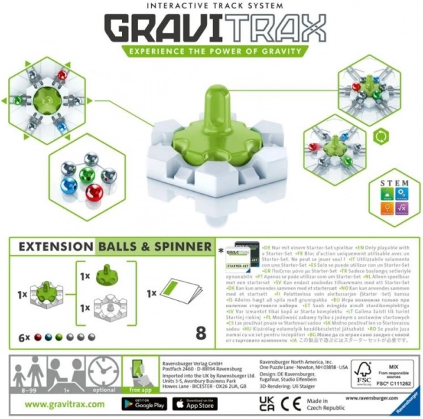 Pakiranje sadrži 3 srebrne i 3 obojene kuglice, pa odmah možete dodati više brzine i efekata u igru. Proširenje je kompatibilno samo s početnim setom GraviTrax, s kojim se besprijekorno uklapa u vaše konstrukcije.