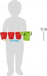 Višekratne tegle imaju na dnu odvodne rupice za otjecanje suvišne vode, što je idealno za zdrav rast biljaka. Set je dimenzijama prilagođen djeci od 3 godine naviše i prirodno razvija motoriku, strpljenje i odnos prema prirodi.