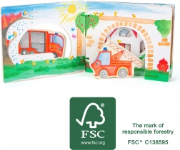 Uz drvenu knjižicu Vatrogasci djeca uranjaju u akcijski svijet vatrogasaca. Knjiga je opremljena drvenim figuricama koje potiču osmišljavanje vlastitih priča. Nakon gašenja požara djeca mogu vratiti figurice natrag u knjižicu, čime uče osnove reda i odgovornosti.