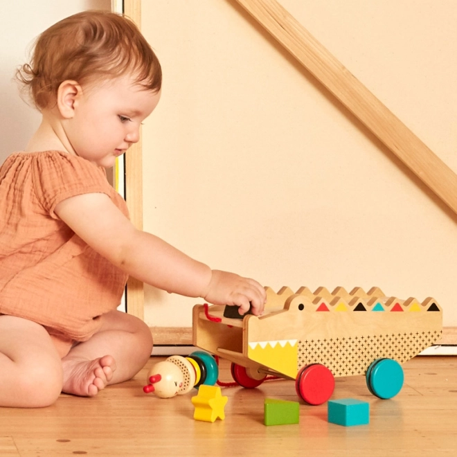 Petit Collage drveni vučni aligator i umetaljka 2u1