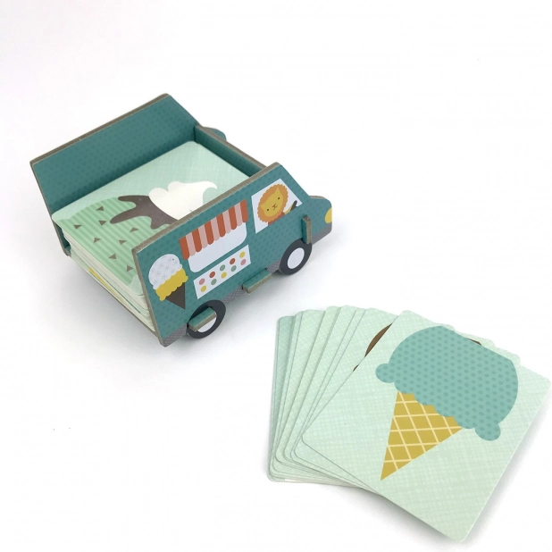 Sladokusci, ujedinite se! Pametna i zabavna kartaška igra u kojoj slažete sladoledne kornete, skupljate kuglice i dodajete posip. Sadrži 52 ilustrirane karte i 4 sladoledna vozila, idealna je za 2–4 igrača, traje otprilike 10 minuta i izrađena je od recikliranih materijala s biljnim tintama. Sjajan izbor za djecu od 4 do 8 godina i udovoljava svim sigurnosnim standardima.