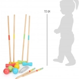 Uživajte u klasičnoj zabavi na otvorenom s kvalitetnim setom kroketa od 100% FSC drva. Varijabilno postavljiva vrata omogućuju podešavanje različitih razina težine, pa će igra zabaviti cijelu obitelj. Kroket potiče motoriku, koordinaciju pokreta i zdrav natjecateljski duh – idealno za vrt ili park.
