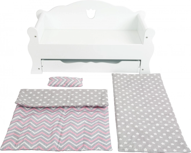 Bijeli drveni krevetić Small Foot s prostorom za pohranu i madracem za lutke do 45 cm. Idealan za dječju sobu.