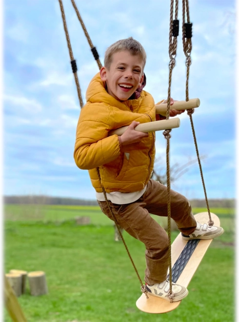 Robusne drvene ručke na užadi lako se pomiču na idealnu visinu. Pružaju oslonac pri uskakanju i ljuljanju u stojećem položaju.