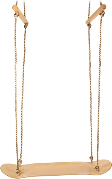 Doživite zabavu i trening ravnoteže s ovom drvenom njihaljkom u obliku skateboarda. Djeca mogu sjediti i stajati kao na pravoj dasci, sigurnost povećavaju podesive ručke i protuklizna naljepnica. Čvrsta šperploča, izdržljiva najlonska užad s metalnim dijelovima i nosivost 100 kg jamče dug vijek trajanja kod kuće i u vrtu.