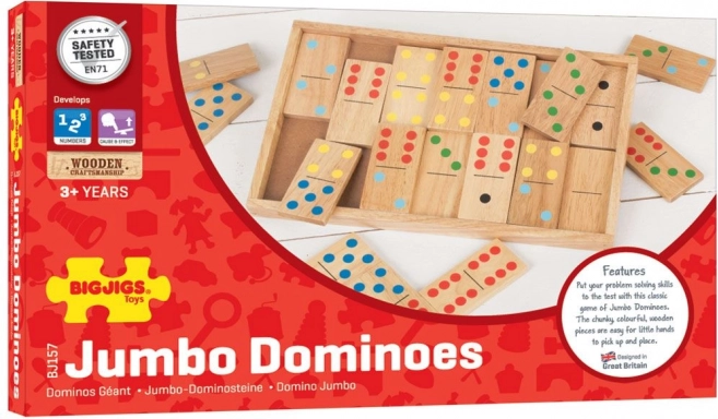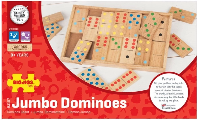 Jumbo drveno domino savršeno je dimenzionirano za malu djecu koja lako mogu podizati i postavljati dijelove. Glavne prednosti ove igre uključuju: