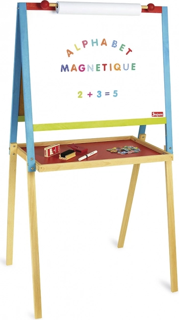 Potaknite dječju kreativnost ovom stabilnom drvenom pločom 2 u 1. Nudi crnu površinu za kredu i bijelu magnetsku površinu za flomastere, držac role papira, veliki prostor za odlaganje i bogat pribor. Proizvedeno u Francuskoj od punog drva, s premazom na bazi vode – sigurno i izdržljivo rješenje za svakodnevno stvaranje.