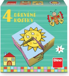 Drvene kocke DINO za najmlađe bezvremenska su 3D slagalica uz koju će djeca uživati satima. Od 4 kocke mogu složiti čak šest različitih sličica ili iz njih izgraditi stabilan toranj. Igra s kockama prirodno razvija koordinaciju oka i ruke, logičko razmišljanje i maštu. Manja djeca mogu slagati prema predlošcima, starija i napamet.