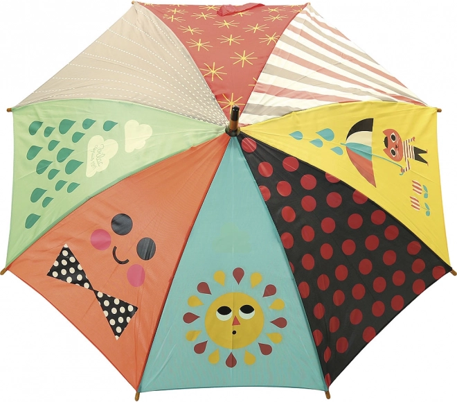 Kišobran je proizveden u Francuskoj od kvalitetnih materijala s naglaskom na sigurnost i udobnost malih korisnika. Ergonomska drvena ručka dobro pristaje i malim dječjim rukama, a glatko otvaranje olakšava samostalnu upotrebu.