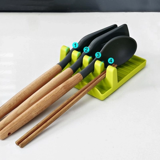 Odlagajući držač sadrži 4 utora u koje tijekom kuhanja možete odložiti bilo koji kuhinjski pribor. Silikonski držač služi i kao organizator u ladici, gdje će vaše kuhače i grabilice savršeno posložiti. Kraj kaosu u ladicama i bacanju svojeg kuhinjskog pribora na jednu hrpu. Držač je protuklizan, tako da će vam odlično stajati na kuhinjskoj radnoj plohi.