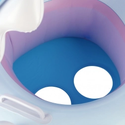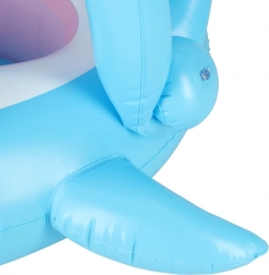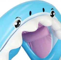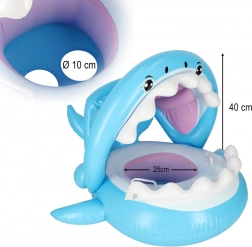 Napuhujuće dječje sjedalo za vodu u veslom dizajnu morskog psa idealno je za prve susrete s vodom u bazenu, rijeci ili jezeru. Uklonjivi baldahin štiti od sunca, dok sjedalo s provlakima za noge drži dijete stabilno i udobno.