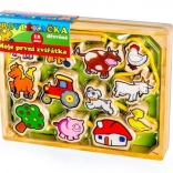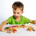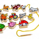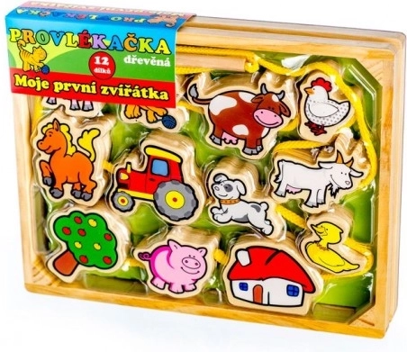 Ova drvena provlačilica idealno je pomagalo za najmlađe. Djeca će uz nju naučiti prepoznavati tradicionalne domaće životinje i njihove mladunce. Igralne aktivnosti povezane s nizanjem potiču pripovijedanje priča i uče djecu ne samo strpljenju, već i prepoznavanju boja.