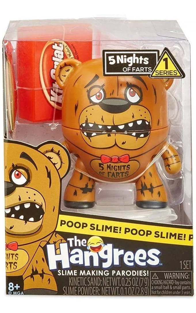 Hangrees Hladovac iz serije 1 donosi originalan humor i kreativnu igru. Dijete nahrani figuricu, protrese je i u trenu nastane sluz koji se može sigurno pohraniti u priloženi mini WC. Zabavni dodaci i aluzije na poznate brendove igri daju jedinstven stil.