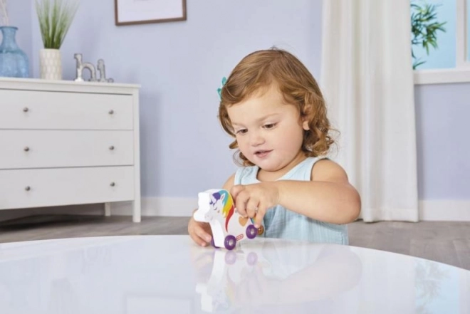 Igračka je opremljena s četiri funkcionalna kotačića koji omogućuju lako rukovanje i kretanje. Idealna je za razvoj grube motorike i mašte djece već od 12 mjeseci.