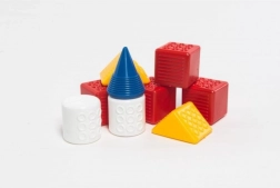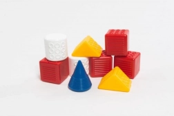 Ovaj didaktički set kocaka idealan je izbor za prve građevine. Zahvaljujući četirima oblicima i bojama djeca upoznaju boje, oblike i uče koordinaciju ruka–oko. Kocke su lagane, sigurne i ugodne za držanje.