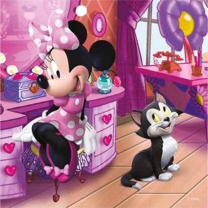 Tri šarene slagalice s Minnie i njezinim prijateljicama donose sate zabave i učenja. Djeca uvježbavaju strpljenje, koncentraciju i finu motoriku, a usto ih vesele prelijepe ilustracije s omiljenim likovima. Svaka slagalica nakon slaganja stvara kvadratnu sliku koja je odlična za izlaganje ili ponovno slaganje.