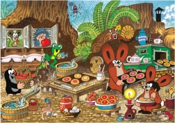 Vesela ilustracija s Krtkom i njegovim prijateljima u kuhinji puna je detalja koji zabavljaju djecu i potiču njihovu maštu.
