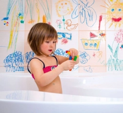 Otkrijte beskrajne mogućnosti kreativnosti s pastelama za kadu. Djeca mogu crtati direktno na kadu ili pločice i stvarati tako nevjerojatna umjetnička djela tijekom kupanja. Mame mogu biti opuštene - svi crteži se lako ispiru i pastele su potpuno sigurne.